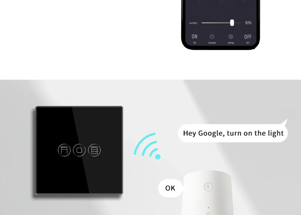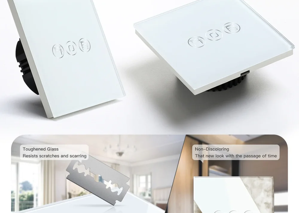 🔘 Moderner Ersatz für den klassischen Wippschalter. Es ist intelligent und einfach über ein Glas-Touchpanel zu steuern.