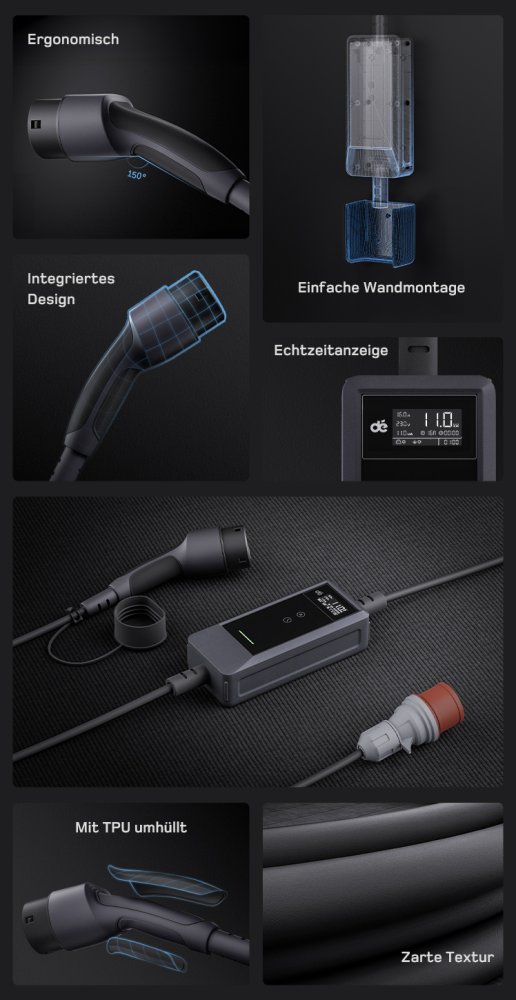 🔄 Einstellbarer Strom: 6A/8A/10A/13A/16A
